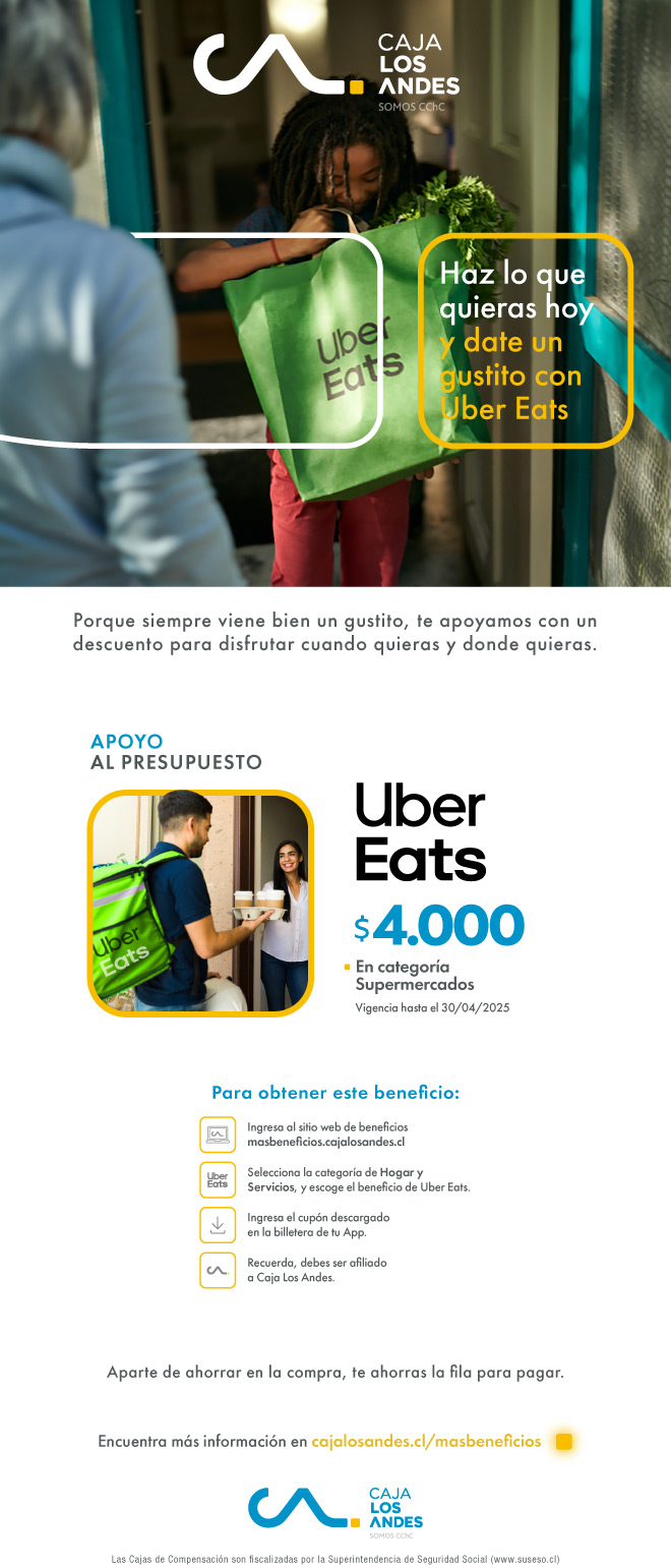 - Descuento de $4.000 en la categoría de supermercadode la app y sitio web de Uber Eats.